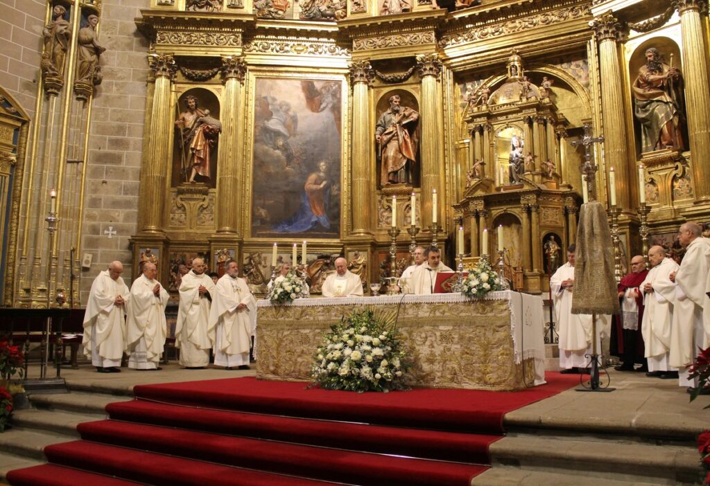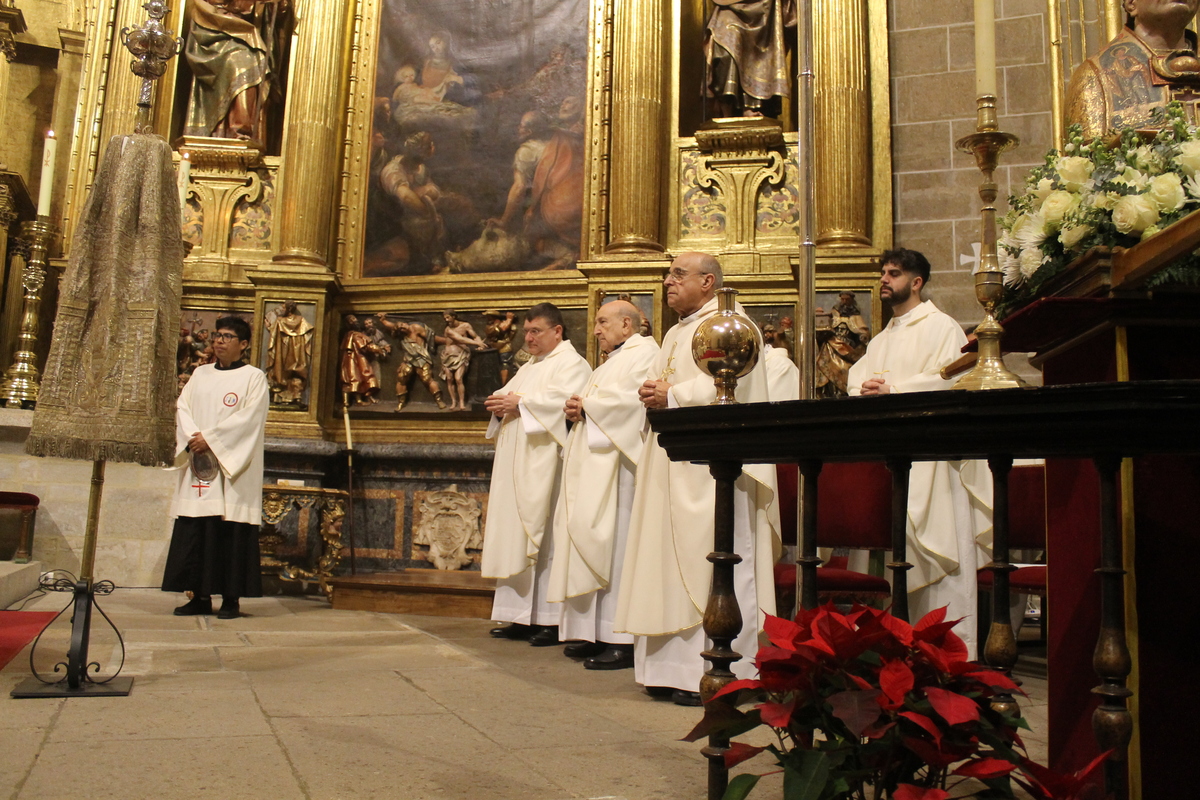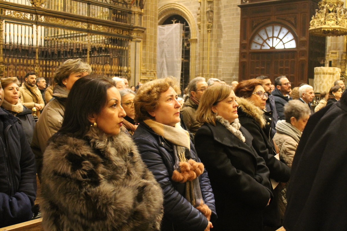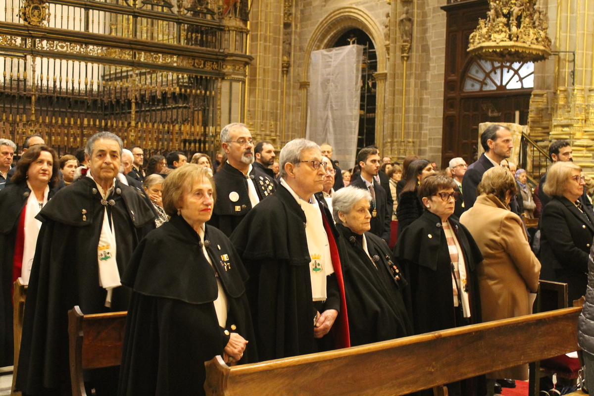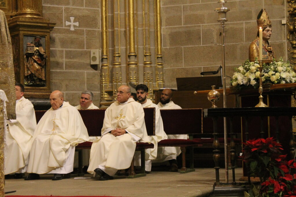 La SI Catedral acogía este viernes, 16 de enero, la Festividad de San Fulgencio, patrono de la Diócesis y de la ciudad de Plasencia junto a su hermana, Florentina. Una celebración que estuvo presidida por nuestro Obispo, Monseñor don Ernesto J. Brotóns Tena, y concelebrada por el Emérito de Albacete, Monseñor Benavente. Les acompañaron en el presbiterio el Vicario General, don Francisco E. Barrado; los miembros del Cabildo Catedralicio, el diácono Javier Tovar y varios sacerdotes del arciprestazgo y también alguno llegado de otros lugares diocesanos. Además, estuvieron presente la consejera de Agricultura, Ganadería y Desarrollo Sostenible en funciones, Mercedes Morán, junto al alcalde, don Fernando Pizarro García-Polo, al frente de su Corporación, además de otras autoridades civiles y eclesiásticas.