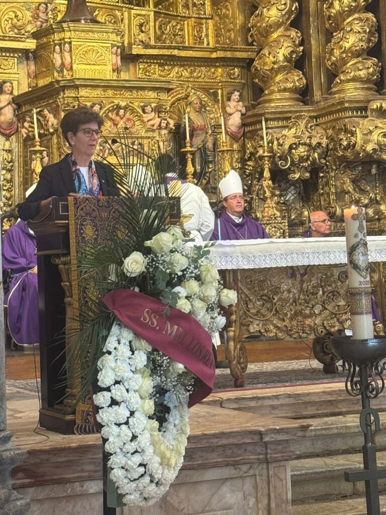 El féretro fue recibido a las puertas del templo por el Arzobispo de Mérida-Badajoz, quien hizo una breve oración. La primera lectura y la oración de los fieles fueron leídas por dos miembros del instituto Secular «Hogar de Nazaret», Inés Escobar, su directora general, y Clari, respectivamente.