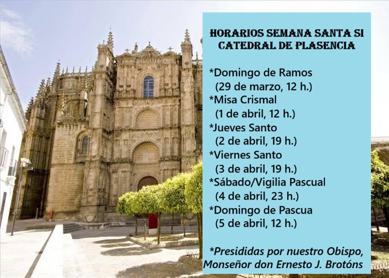 A continuación les ofrecemos las fechas y horarios de las celebraciones de Semana Santa presididas por nuestro Obispo, Monseñor Brotóns, en la SI Catedral.