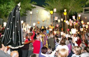 Carmen Real nos traslada a la magia del momento que se vive en la localidad diocesana. En realidad, la procesión de los faroles comienza con la Novena en honor a la Virgen nueve días antes. Preparamos a la Virgen con flores, faroles y se le dicen los novenarios. El Viernes de los Dolores se saca en procesión y toda la gente va acompañando con faroles, aunque lo tradicional es ver a los niños que llevan los faroles en unas cañas altas acompañando a la Virgen cantando. Al llegar a la iglesia, la tradición es quemar a todos los faroles para que el próximo año haya faroles nuevos.