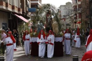 En Navalmoral, el domingo de Ramos huele a tomillo, a calles llenas de aromáticas por donde trascurre la procesión de la cofradía de la entrada en Jerusalém, con la imagen de Jesús en la «burrina», acompañado por la imagen de María del Rosario y las Candelas ataviada de hebrea portada a hombros por el grupo de jóvenes del Nazareno. A la procesión se une una amplia representación de la ciudad, los representantes de las Cofradías Penitenciales y miembros de la Corporación Municipal, así como los niños y niñas de catequesis de Primera Comunión. El cortejo recorre la ciudad entre San Andrés y la ermita de las Angustias para celebrar después la Eucaristía en la iglesia del patrón moralo.
