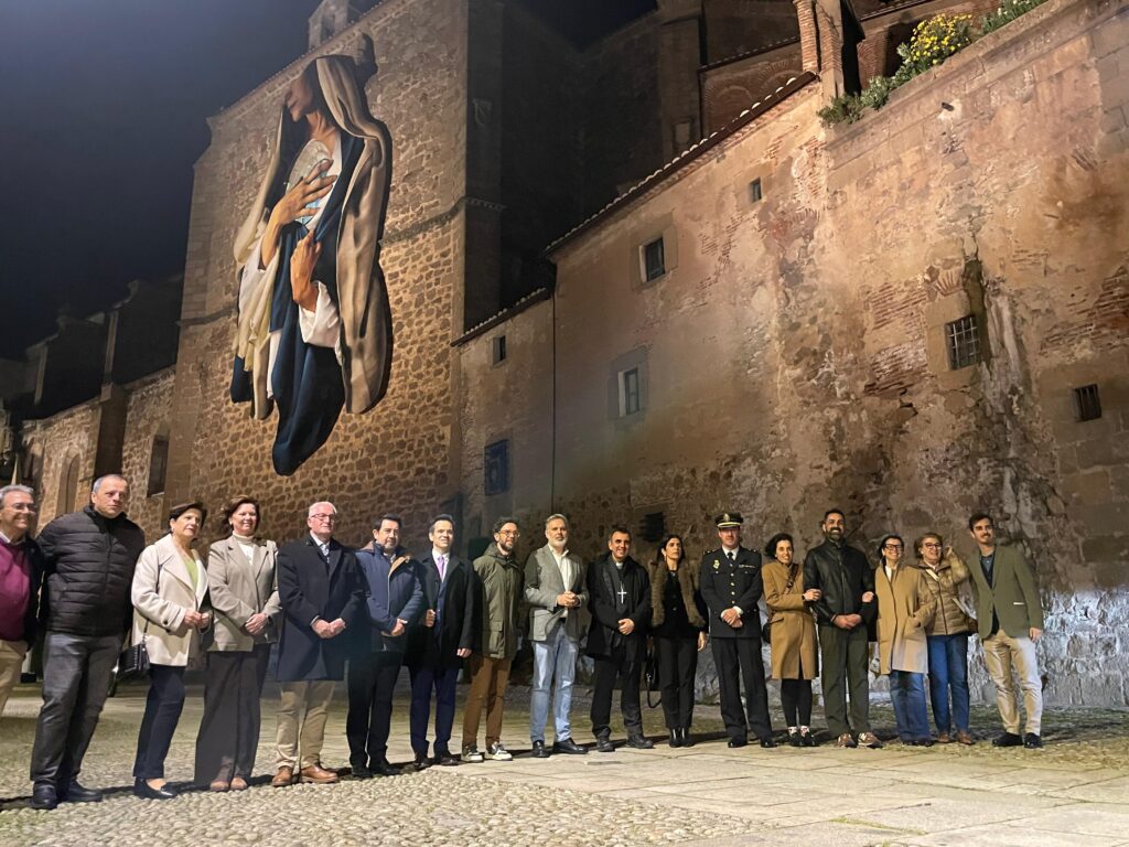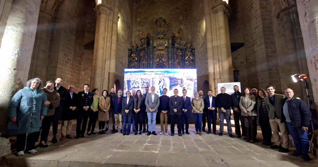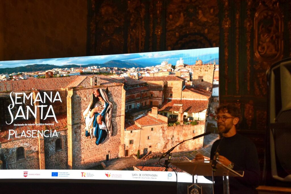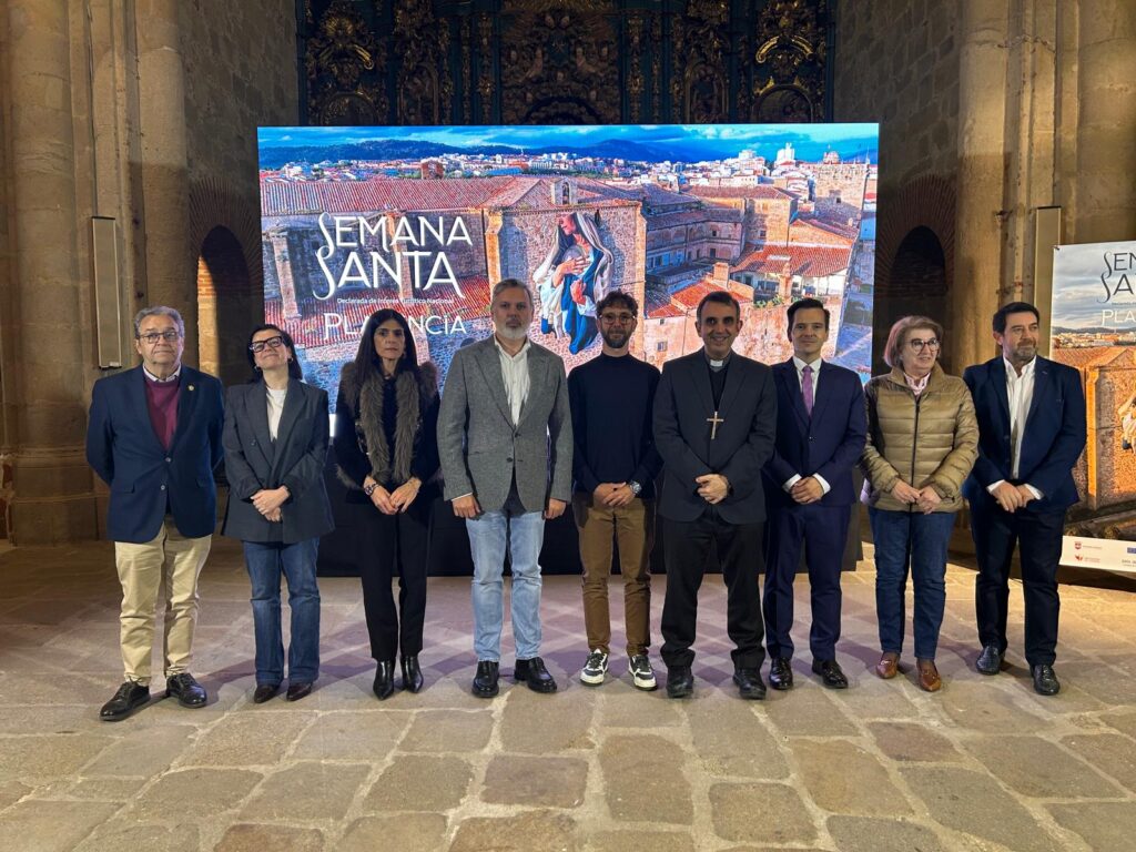 Este jueves, 19 de marzo, la Catedral de Santa María acogía la presentación del Cartel de la Semana Santa de Plasencia 2026, la primera desde que fue catalogada de Interés Nacional, un cartel que recoge desde el aire el enorme mural realizado por Jesús Mateo Brea e instalado en el exterior del Templo Cofrade de Santo Domingo.