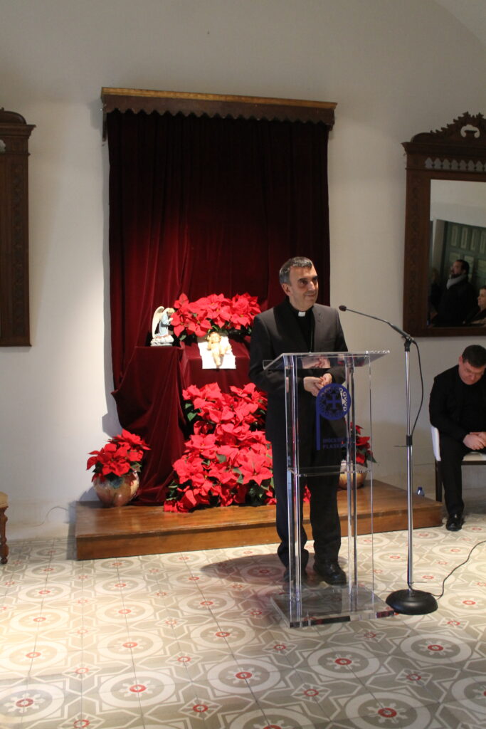 El acto comenzó con el rezo del Ángelus al que siguió la alocución del Vicario General, quien señaló que «contemplar al Niño Dios debe ser fuente inagotable para mantener vivo el fuego del amor que se entrega. La Navidad nos hace reconocer humildemente donde está el origen de nuestro ser cristianos, nuestro querer ser testigos del Evangelio».