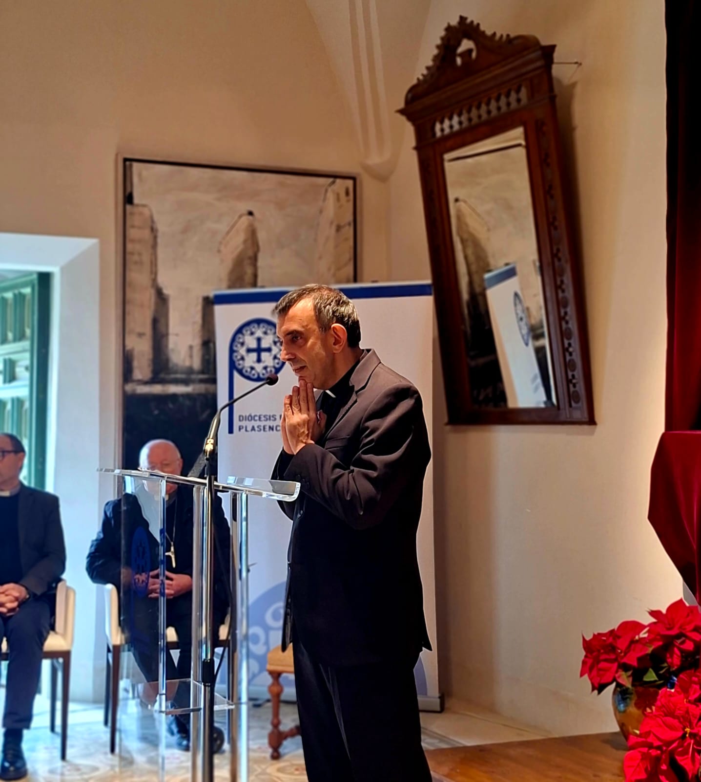 Antes de finalizar el acto con un momento fraterno acompañado de unos dulces navideños, Monseñor Brotóns también quiso felicitar la Navidad a todos los diocesanos. Repasó la importancia del Jubileo de la Esperanza, con el aniversario del Concilio de Nicea y quiso trasladarnos a la realidad que recoge el informe Foessa, a la vez que recordó la tragedia que han supuesto este año los incendios en numerosos municipios o la persecución de los cristianos. Nos pidió «dejar que el Señor saque lo mejor de nosotros mismos para ponerlo al servicio de Dios».