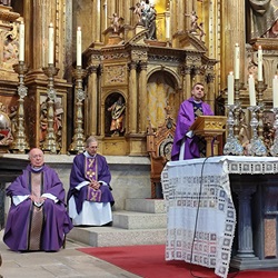 «Dios nos ha bendecido con un pastor bueno según su corazón, con su lenguaje sencillo, pero profundo, con gestos inusuales de cercanía, y una vida entregada al servicio de los más pobres, nos ha enseñado que la misericordia no es una idea abstracta sino el rostro concreto del Evangelio», incidía don Ernesto Brotóns, que también destacaba que «su voz profética en defensa de la vida, de la paz, del cuidado de la casa común y en especial de los más pobres y vulnerables, que encontraron siempre en él un padre y un defensor, ha resonado en las periferias del mundo un día sí y otro también convirtiéndose en un revulsivo de conciencias y en un referente ético mundial». También enumeró algunos gestos de su pontificado que están en la retina de todos los fieles del mundo, como el viaje a Lampedusa o la subida en la Plaza de San Pedro el 27 de marzo de 2020 en plena pandemia «para pedir por la salud de todos».