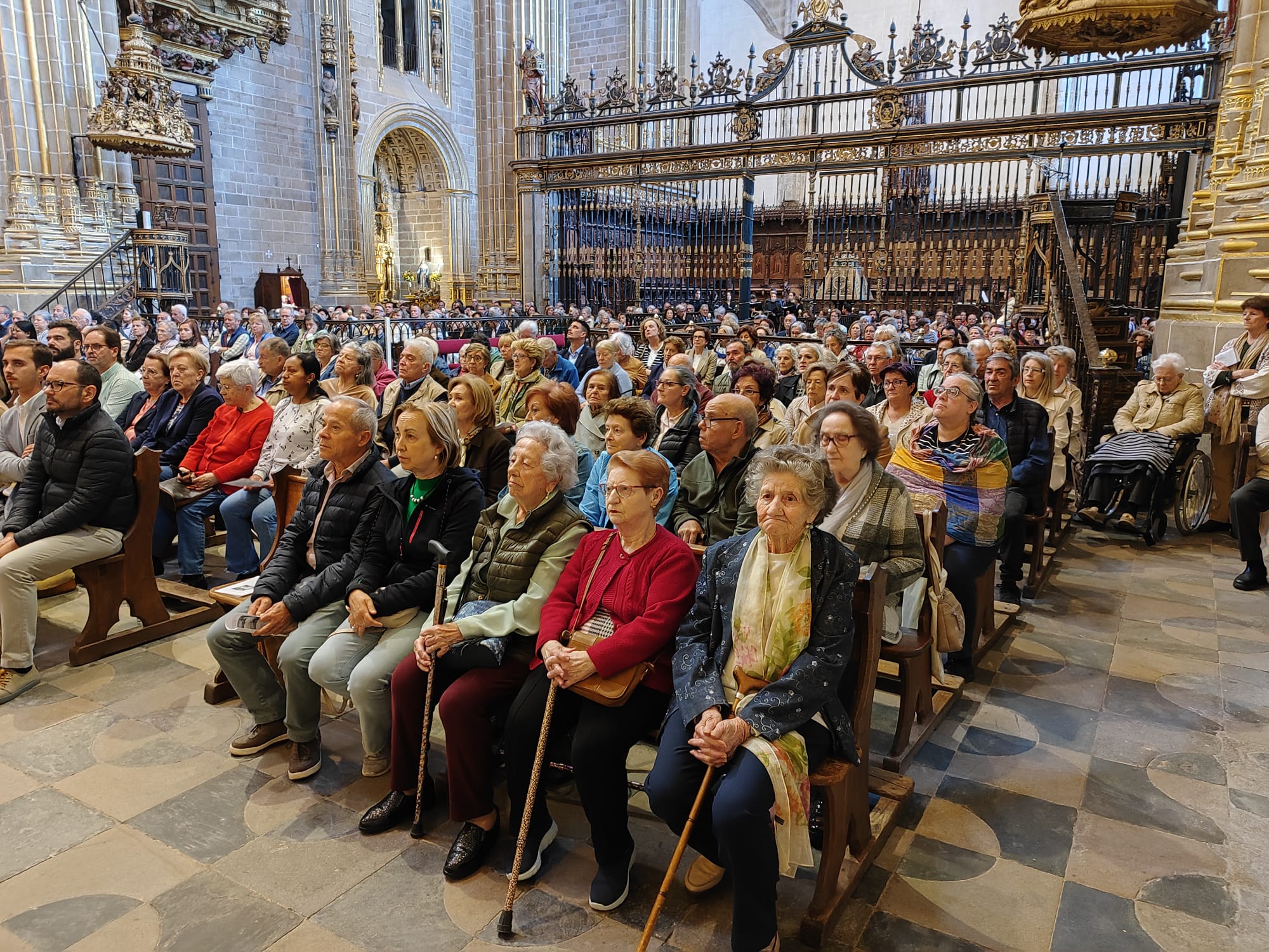 Nuestro Obispo, Monseñor don Ernesto Brotóns, presidía este lunes la Misa Funeral en agradecimiento y recuerdo a Papa Francisco, que fallecía el pasado lunes 21 dejando consternada a la Iglesia que ha pastoreado durante doce años y que toma de él ejemplo para seguir un camino iniciado de fidelidad al Evangelio y a la Esperanza en Cristo. En una Catedral de Plasencia llena de fieles y bajo el acompañamiento musical de Cum Iubilo y del organista, Eugenio Mateos, don Ernesto estuvo acompañado por el Emérito de Albacete, Monseñor Benavente, por el Deán de la Catedral, don Jacinto Núñez, miembros del Cabildo, Vicario General, don Francisco E. Barrado, y otros vicarios, y numerosos sacerdotes, algunos de ellos llegados de otros puntos de la diócesis. Junto al ambón izquierdo, una fotografía del Pontífice presidía la celebración, a la que también asistieron miembros de la Corporación Municipal, con su alcalde, don Fernando Pizarro, al frente, y miembros de delegaciones episcopales de nuestra Diócesis.