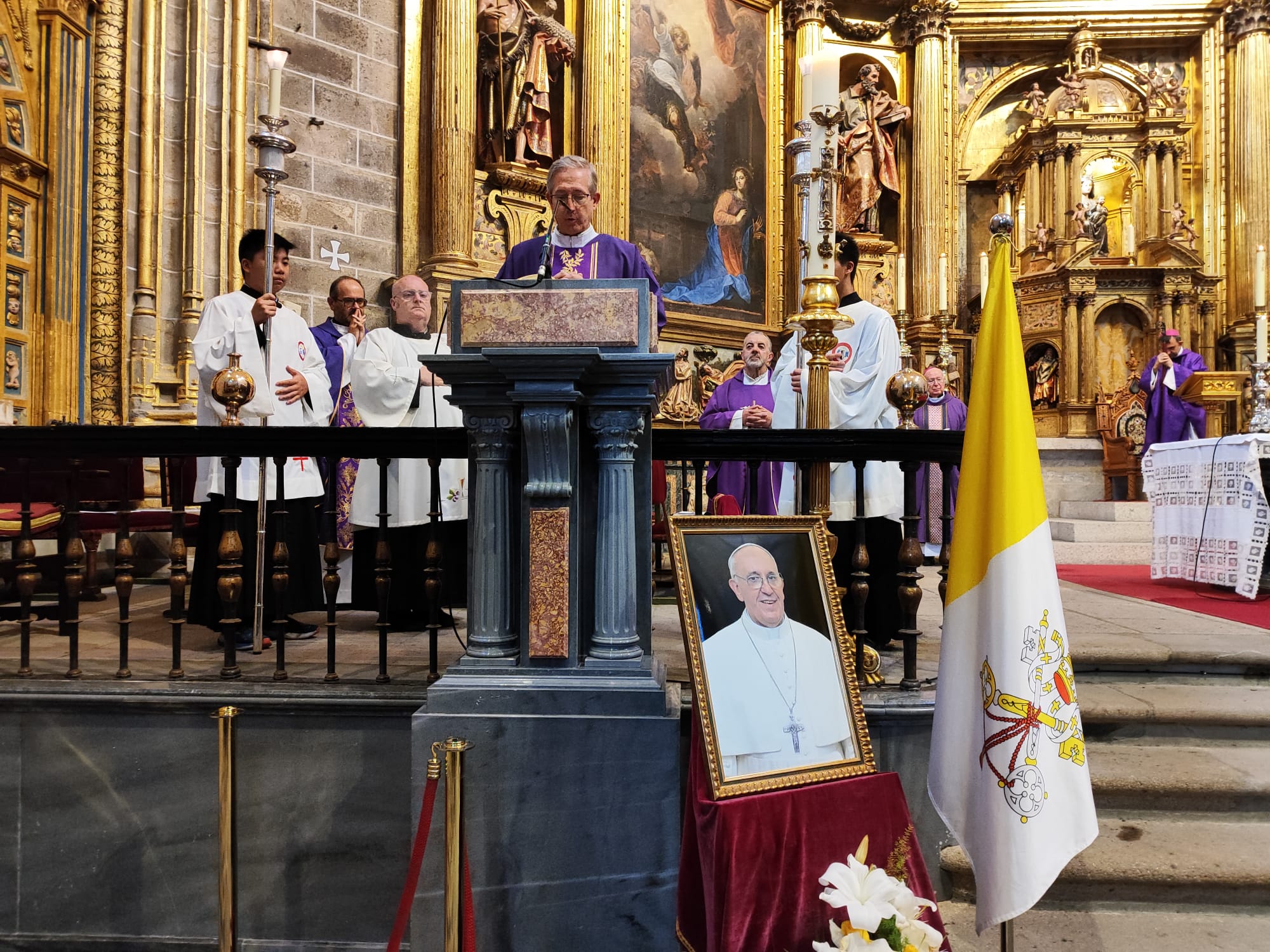 «Dios nos ha bendecido con un pastor bueno según su corazón, con su lenguaje sencillo, pero profundo, con gestos inusuales de cercanía, y una vida entregada al servicio de los más pobres, nos ha enseñado que la misericordia no es una idea abstracta sino el rostro concreto del Evangelio», incidía don Ernesto Brotóns, que también destacaba que «su voz profética en defensa de la vida, de la paz, del cuidado de la casa común y en especial de los más pobres y vulnerables, que encontraron siempre en él un padre y un defensor, ha resonado en las periferias del mundo un día sí y otro también convirtiéndose en un revulsivo de conciencias y en un referente ético mundial». También enumeró algunos gestos de su pontificado que están en la retina de todos los fieles del mundo, como el viaje a Lampedusa o la subida en la Plaza de San Pedro el 27 de marzo de 2020 en plena pandemia «para pedir por la salud de todos».