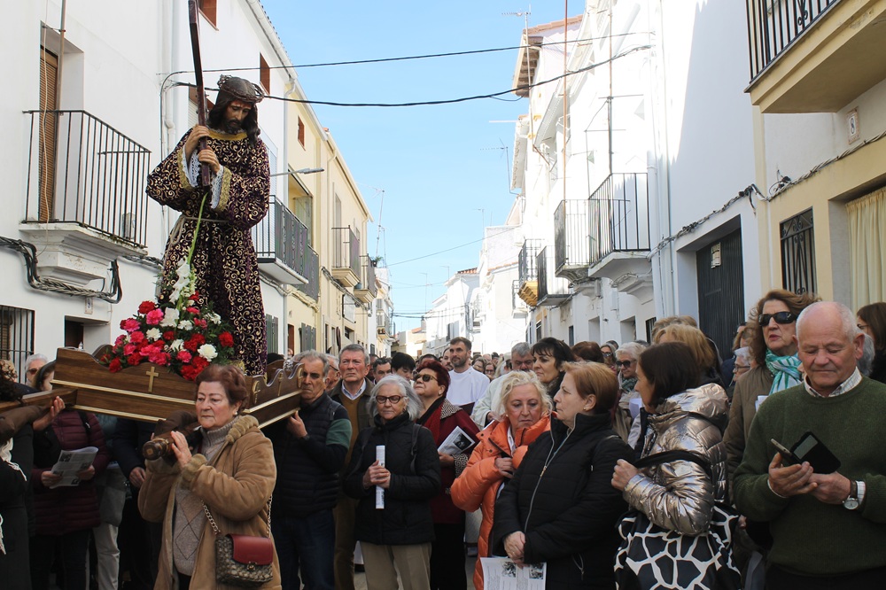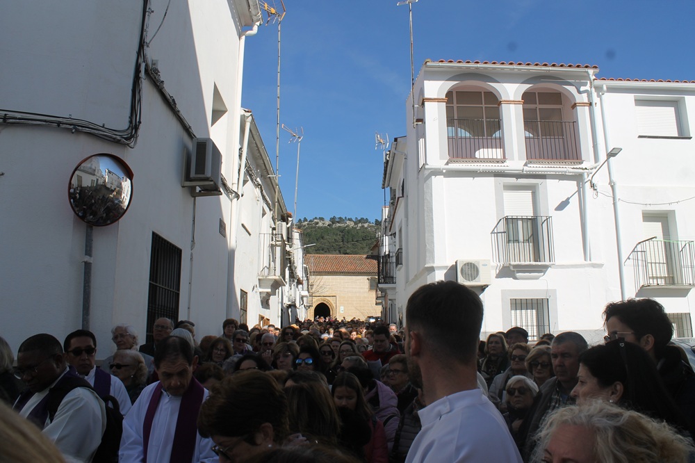 El año pasado tuvo que suspenderse por el fallecimiento del Papa Francisco y, tal vez ese fuera el motivo de que la llamada a los fieles tuviera mayor respuesta que anteriormente. De hecho, tanto la iglesia de la Asunción como el Santuario del Santísimo Cristo de la Victoria, escenarios principales de las celebraciones, se quedaran pequeños y obligaran a numerosos fieles a seguir los actos en los aledaños. Las calles de la localidad fueron el otro eje sobre el que giró la jornada con la celebración del Vía Crucis.